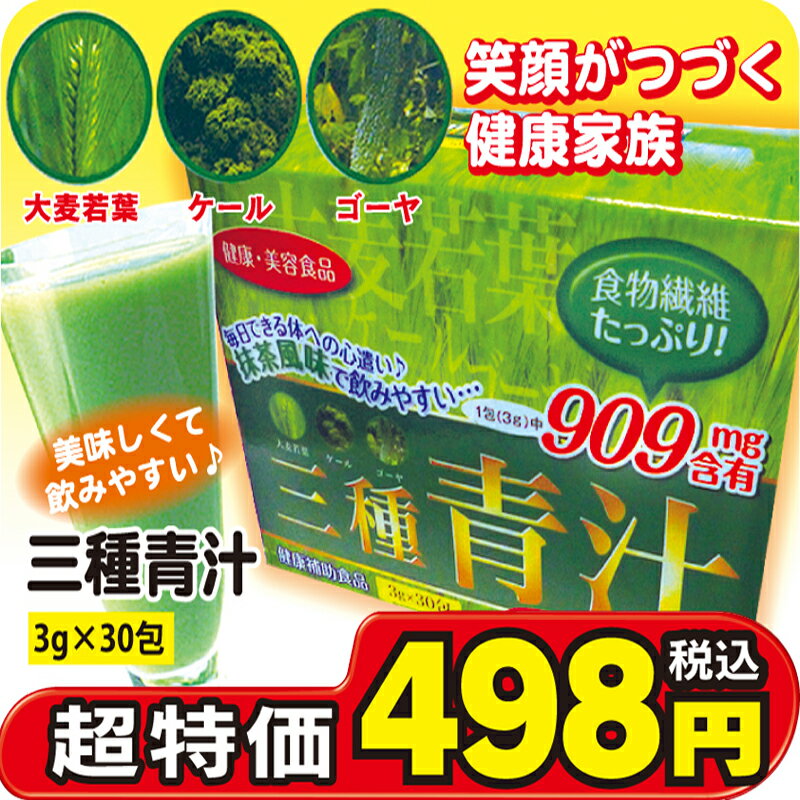 (メール便で送料無料)食物繊維たっぷり!三種青汁!(3g×30包)【メール便対応】【あす楽対応】【送料無料】【RCP】SS10P03mar13