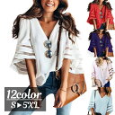 シフォンブラウス 5分袖 Vネック ベルスリーブ プルオーバー レディース トップス トランペットスリーブ メッシュ切り替え シースルー おしゃれ きれいめ 大人女子 シンプル 無地 単色 ソリッドカラー 女性用 婦人用 S M L XL 2XL 3XL