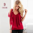 急ぎ!200円セール!ノースリーブ カットソー レディース トップス シフォン フリル タンクトップ オープンショルダー Vネック ノースリ 無地 カジュアル