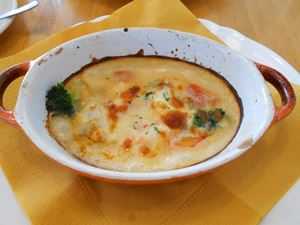 閉店になったため、御影店に久しぶりに行きました。シーフードランチ(海老とホタテのグラタン)をたのみました