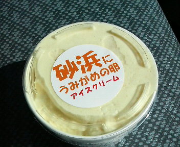 砂浜にうみがめの卵アイスクリ-ム気になるでしょ~このネ-ミング 土曜日に食べる事が出来ました。これが食べてビックリ(*゚ロ゚)ネ-ミング通りの味や!!知ってる人、居てるかなぁ~・・・ 昔ピンクレディ-がCMしてた『宝石箱』ってアイスがあったの食感は、ツブツブ氷が入ってて時々ガリッて感じ!?(あぁ~文章で伝えるの難しい)まず、1口目...懐かしい味...そしてこの舌触りあぁ~きなこの味だぁ~ ザラッとしてるのは氷でなくザラメかも?これは砂浜を表してるんだぁ~(≧∇≦)うんうん、こりゃ美味しい♪ ウチの好きな味だわ♪(*゚ロ゚) スプ-ンが底に当たる前に違和感が!!!なんと!卵がゴロゴロ出てきましたぁwウミガメの卵に見立てた?マシュマロです (笑´∀`)ヶラヶラ食べる時は、卵を砂浜から掘り出す様な感じになるのねっ最初、本当にウミガメの卵だとか何かが入ってるのかとびびったよ。普通に美味しいアイスクリ-ムでした。。。 次回は「海アイス」購入予定(爆) クリック⇒