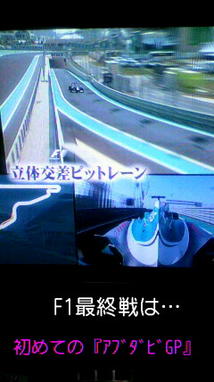 始めてのコ-ス アブダビGPです...そう、リアルタイム更新です。「カズキVSカムイ」とか言われてるけど ウチ的には、イケイケな小林可夢偉をプッシュでもTOYOTA来年は無いんちゃうん? 応援するでぇ~しかし、ココのコ-ス面白そう 長い直線や立体交差? それから、段々夕暮れになってく...さて、CM終わったんでテレビに集中だあ、アルコ-ル飲んでませんよ。 PEPSIの新商品?「AZUKI」を飲んでます...微妙で、なかなか進みません 1クリックお願い♪⇒