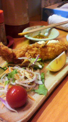 昨日の MBSちちんぷいぷい で言うてました。関東と関西ではファッションが違う。 関西に行くほど服装もメイクも派手好きになる...と。なんと全国で1番化粧品にお金をかけている所は徳島市らしい徳島は働く女性が多い。 女性社長が多い。 買物も神戸や大阪へ行く事も多い...などなど月平均3万4052円かけてるんだそう.....ウチは、その平均の3万円引き位ですけどねみんな、そんなにかけてるんやなぁ きっと高ぁ~い美容液とか使ってるんだろうなぁ高いんを丁寧に使うより、安いんをバシャバシャ使う慶でした火曜のPinkyは...やっぱし前半から暇ひま 今回はテレビ三昧。なんだっけ?ダイエット番組を見てました大西けんじ...いや、はるな愛ちゃんの過酷なダイエットを見てプロやと思うた!!!あの努力でニュ-ハ-フ世界一を勝ち抜いたのね~.....っと感心してた時にM田さん御来店♪ 今度は鶏屋か和食かイタリアンか...早よ連れてけwHっし~御来店♪ カレンダ-ありがとぉ-♪ もう、そんな時期なのねっRママ御来店♪ 連日さんきゅ~♪ 次回はR門に連れてってね~♪♪♪Hチ-ママ御来店♪ M田さんに「オラオラ」口調がめちゃ可愛い♪S藤さん・八万さん御来店♪ 熱いト-クに入れず逆放置気味w S藤さんとアフタ-「慎坊」へここでは、色々話せたね~ 食べて飲んでワイワイしゃ~ないなぁ~1枚撮っとこかぁ~? びっくり...じゃなかった 特大エビフライです あれれ? 大きさを表す為にS藤さんのタバコ置いたんだけど、タバコの箱が黒くて分からない慎坊に「123」のマッチ箱借りて再度撮影( ;´Д`)うわっ 心霊写真や~くわばらくわばら... 1クリックお願い♪⇒