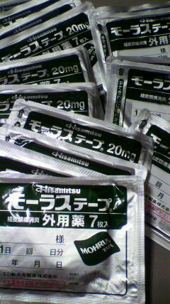 昨夜の慶は...バッチシ着替えも化粧もして出て行くだけでしたが家庭でのカクカクシカジカがあって出て行けませんでしたぁTさん・友達さん・Yちゃん一緒に食事行けなくてごめんね-N岡君かなり待たせたのに結局行けなくってごめんなさいM-ちゃん2度も連絡くれてたのに、ごめんなさいHちゃん前にも、こんな日があったよね- いつも、ごめんね-Iさん色々話したかったのに、ごめんね-例の寝違いは、まだ痛いけど かなりマシになりましたぁ沢山の心配とアドバイスありがとうございましたお風呂で温まりながらマッサ-ジと湿布を何度も貼りかえて、首を動かさない様にしてました。でも、薬飲む時のウチの癖で上を向いてしまい 痛さで飲んでる水を噴出しそうになりました気をつけなきゃ溺れますねっこんなに沢山湿布がありま-す 腰痛用に貰ったのと、親父が肌がかぶれて使えんとくれたのと幸い、指先以外は肌が強いのか何度貼ってもかぶれないので調子に乗ってたら少しヒリヒリしてきました首に貼ってるけど髪の毛で隠れています外では風が吹かない限りバレません...でも臭いだけは隠せません 1クリックお願い♪⇒