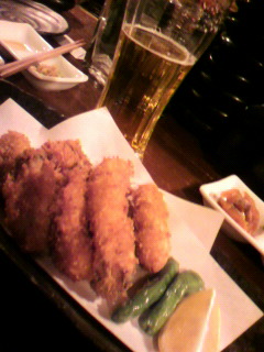 1月26日(水曜) のこと。Pつ・5回目の彼女御来店♪当店辛口採点カラオケ対決でした 練習になったかな? 18番が1番良いねKにぃ御来店♪なんか熱いト-クをした後、この辺からウチが酔っ払ってきましたHっし~御来店♪何のト-クをしたのか、ほとんど覚えていないけど3人で下に行こうと言う事に 牡蠣フライ&焼きたらこ・・・他にも、生ベ-コンサラダと野菜ステック食べたよ。いや、食べ物よりも生ビ-ルの後、芋ロック飲んで、その後BARハ-レ-さんへ行く何飲んだんだろう??? ロックを飲んでた気がするが全く覚えていません寝起きに喉がカラカラで500mlの水をほとんど一気飲みして生き返りました(笑)(。・_・)ノ”【ポチッと宜しくです】”⇒