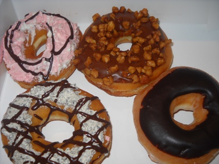 中学2年になった長女おぶぶは最近とみに行動範囲が広がりついに難波あたりに出没するようになった。まだ一人ではよう行かんみたいやけど・・・・お気に入りの雑貨屋で買い物をして昼飯(なんと最近の女子中学生は吉野家の牛丼でランチするらしい・・)食ってあちこちうろうろしてそろそろ帰る時間になる頃、誰かがクリスピークリームドーナツを買って帰ろうということになったらしい。「と言うことになってけどドーナツいる?」 とワタシの携帯に電話が。「一番安いやつ4つ買うてきて!!」とリクエストすると買ってきてくれました。それがこれです。さっそ一口食べてみると「甘い!!甘い!!甘い!!」最近甘過ぎる食べ物は体が拒否するようになってきたので、このドーナツはもう10年くらい食べなくてもええです。おぶぶありがとう。って、代金はこっちが払ったんやけど・・・