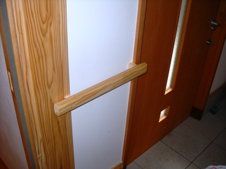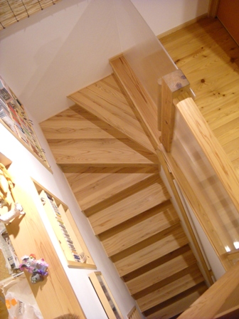 今年の10月で「すうどんの家」に引越して2年になるのをひかえ、すうどんの作者であるコアー建築工房が2年点検にやってきた。雨が吹き荒れる土曜日の午前10時きっかり。この日の為に選りすぐられた精鋭5名は雨で足元が悪いのにもかかわらず、さっそうと車から降り立った。棟梁、設計士、電気屋さん、監督、積算のスペシャリスト達だ!!「それでは2年点検を実行します」とリーダーらしき企画部の若きホープ、T氏が号令をかけると各精鋭達はあっという間に道具をかかえて持ち場に散り、早速作業を開始した。事前にこっそりコンセント増設と玄関手すりの造作をお願いしてあったので「コンセントはどの位置に?」 「手すりの高さはどのくらい?」「ええ? 奥さん、答えて下さい!!」と右や左から質問が飛びまくり点検初心者マークの家族は上や下への大騒ぎである。コンセント増設の為TV台を動かすと埃の山が発見されてあわてて掃除機で吸うわ、手すりの高さを決めるため次女のおべべに上がりかまちを何べんも上下させたり、ひまなおべべがチェックボードかかえて忙しく動きまわるスタッフ達を横目でみながらリビングのど真ん中に座布団置いてクッキーを食べ始めたり、もう大変である。それでもプロフェショナルの仕事はすばらしい。右向いて左向いて2階に上がって1階に降りたら全部出来ていた。それがこれである。さらに・・・「先日手作りしたおべべ机がぐらぐらする」と小声でつぶやいたら、棟梁があっという間にがっちり補強をしてくれました。コアー建築工房の皆様、まことにありがとうございます。またちょくちょく点検に来て下さい。毎月でもOKです。