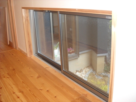 さて、日記のアップをぐずっているうちに季節は確実に進行し、春の陽気を感じさせる日々がぽつぽつと出てきましたが朝晩はまだまだ肌寒い日があるようです。そこで今更の冬の対策シリーズ最新版です。まずはこの画像を・・・1Fの和室から我が家自慢の坪庭を望む地窓です。ここは東側になるのですが、隣接して古いアパートが建っており、日があまり当たらない場所で冬はやはり寒い。ここに蓋をして隠してしまうと冷気は防げるけれど暗いしせっかくの坪庭が見えない。そこで自慢の半透明ボードを使って冬の間だけこの地窓を覆うカバーを作りました。それがこれです!!写真ではちょっと分かりにくいですが、冬の対策その壱で利用した建築用養生シートに木の枠を取り付け、地窓の窓枠にすっぽり被せる様にしました。明りは遮らず冷気だけ遮断する!! しかも取り外し自由!!しかもメイドイン嫁!!そして材料は一部もらいものの端材を利用でローコスト!!ワタシは写真を撮るだけ!!と、言う事なし。人呼んで一人でガンバル地窓カバー君素うどん2号。このように素うどんの家は着実に冬の冷気から守られていっております。