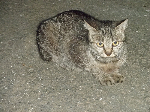 最近、僕が行っても出てこないんですよ。兄弟が行くと出てくるのに・・・人見知り?そういえばこの猫の子供は出てこないらしい。毎日通ってる兄弟でさえ仔猫は見れないそうだ。交通量が割と多いから、出てこれないのかな?それとも・・・。心配ですよ。