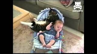 赤ちゃんにいつも寄り添うニャンコ先生。赤ちゃんは少し困り顔の時もありますが・・・(^^;