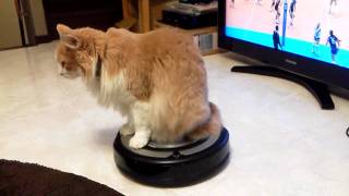 クルクル・・・目が回らないかにゃ?猫が乗ったくらいじゃびくともしないんですね、ルンバって(^^)