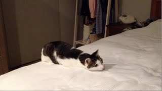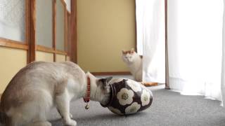猫さんの手の上に手を乗せる遊び。楽しく遊んでるのかと思ったら猫さんガブリ!でも・・噛まれても飼い主さん・・すごく楽しそう・・・。かなり羨ましいぞ・・・。