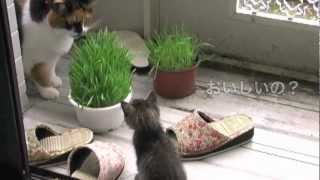 猫はグルーミングで食べてしまった毛を毛玉として排出するために猫草を食べるそうです。(※)大人の猫の様子を見て仔猫も真似をして食べようとしますが、なかなか上手に食べられません(^^;一日も早く猫草が食べられるようになると良いですね(^^)(※ あくまでも噂の域。本当の理由は、まだ解明されていないそうです)