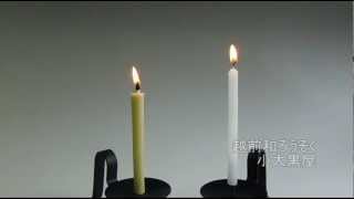 この動画では、まだ火の大きさくらいしか分かりませんね。機会があれば、自宅にある会津の「絵ろうそく(和ろうそく)」を使って動画を作ろうと思います。ちなみに、道の駅や土産物屋で売られてる「絵ろうそく(和ろうそく)」は大半が偽物ということです。海外から和ろうそくに似せたろうそくを仕入れ、それに絵柄を描いたりシールのような物を貼り付けたりして販売しています。和ろうそく作るのは大変で、土産物屋に回すほど大量生産が出来ないのが現実。偽物を買わされないためにも、和ろうそくがどんな物かを勉強して欲しいですね。