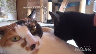 すごく幸せそう・・♪それを見てる黒猫ちゃんは少し羨ましそうに見えます。(1分12秒頃)