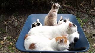 「人だかり」ならぬ「猫だかり」(^^;人柄猫柄が良いから集まってくるのでしょう。