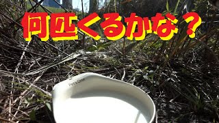 警戒しながら美味しそうに食べてます。一度食べたらまた食べたくなる・・人に懐くのも時間の問題・・・かな?