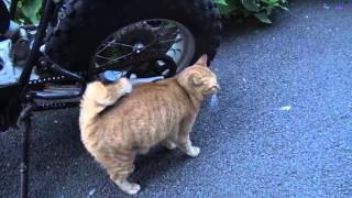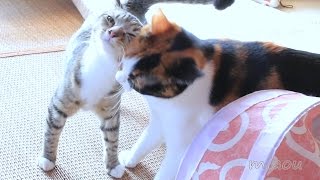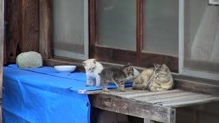 家猫さんは他の猫が来てもゴロゴロしてます(^^;野良猫(?)さんも家猫さんが近くにいても気にする様子無し。