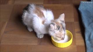 保健所に送られそうになるところを保護。ミルクを飲みながら何か言ってますね。「ミルク、美味しいよ」・・かな?