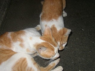 仔猫が母猫(手前)に甘える姿が可愛いですね(^^)