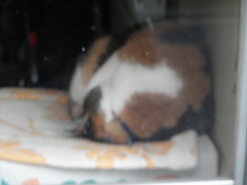 今日は「みーちゃん」は箱の上で寝てました(写真)