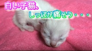 寝てる子猫を見てるこちらも眠くなる・・・。これ以上は育たないはず・・自分(^-^;