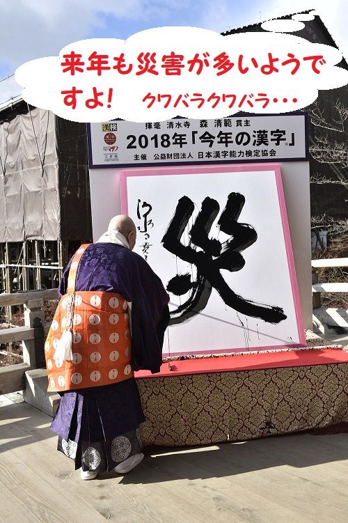 おはようございます みなさん清水寺で「災」が今年の漢字で発表されました2018年12月12日漢字の日(かんじのひ)財団法人日本漢字能力検定協会が1995年(平成7年)に制定した記念日毎年12月12日「いい字一字」が「1(いい)2(じ)1(いち)2(じ)」語呂合わせになることにちなむそうです同協会が発表した数は応募総数19万3214票のうち2万858票を集めたということですしかしこの「災」年々増えてきています科学者や知識人の中には北極の氷が解けていることから地球温暖化をあげて危惧していますが真逆に氷河期になりつつあるという科学者もいますさて何が真実なのか宗教的にはもっと深い意味がありますがここは触れないでおきましょう来年もっと大きな「災」や「争い」などが来たら今度は漢字は「争」になるんでしょうか今年は戌年(いぬどし)でした十二支でも最後から二番目で植物で表すと戊(つちのえ)の「植物の成長が絶頂期にある」これと戌(いぬ)の「草木が枯れる状態を表す」という意味と比和の関係だそうでどうやら今年は後者の方でしたねそして来年は亥年(いどし)です十二支では最後を表す年です亥年でいったん終わりを告げる年植物では終わりは実をつけ種子を宿す終わりですつまり次の始まりに向けて新たなエネルギーを蓄える年でもあるのです過去にこの亥年に何があったか調べてみたところ大変なことが起きた年でもあるようです特に大震災が目立ちます抜粋すると以下の通りです1911年 喜界島近海地震 1923年 関東大震災 1935年 静岡中部地震 1947年 カスリーン台風 1959年 伊勢湾台風 1971年 十勝沖地震 1983年 大韓航空機墜落事件 三宅島噴火 1995年 阪神淡路大震災 地下鉄サリン事件 特に関東大震災や阪神淡路大震災は強烈ですね防災はいつどこで誰に襲い掛かってくるかわかりません備えあれば患いなしですね【幸福になる技術】自然のままに任せると他の人に対して嫉妬し「あの人を引きずり下ろしたいあの人をくさしたい」という気持ちが働きますそのときに努力して踏みとどまりその人の優れた点や才能努力したところ本当に素晴らしい実績を挙げた部分を認める心を持つことができればそれは「自分自身がその時点で一つの壁を越え成長した」ということを意味しているのです人の優れたところや美点を見るだけの目ができ心に余裕ができたわけです自分を認めてくれる人のためであれば人は一生懸命に働きます場合によっては自分を認めてくれる人や自分の才能を知っている人のために死ぬことさえありますそれほど「人に認められる」というのは大きなことなのです・したがって相手を主観的に見て否定するのではなく「相手のよいところを認める」という考え方が大事であることをまず学ぶべきです・結局ほかの人のよいところを認めると自分自身が伸びるのですHS(心を癒す ストレス・フリーの幸福論p120)心を癒すストレス・フリーの幸福論 (OR books) [ 大川隆法 ]心を癒す ストレス・フリーの幸福論【電子書籍】[ 大川隆法 ]◆「人を祝福する気持ち」を持とう!信仰の法 地球神エル・カンターレとは [ 大川隆法 ]信仰の法【電子書籍】[ 大川隆法 ]