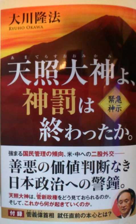 コロナ第三波の始まり⁈おはようございます みなさん寒冷地のコロナ、増加傾向に 本格的な冬への備え 積極的な換気、一定の湿度を 11/2(月) 21:36配信産経新聞このコロナ感染者数の増加は寒冷地だけではないでしょう空気が乾燥し気温が下がってくると換気が寒さの影響で頻繁に出来なくなりますまた湿度が低くなるのでウィルスの活動時間が伸びてきますそのためにウィルス感染が増えてくるのですこれは欧米でも同じ現象が起きています向こうは第二波でしょうが日本は第三波となってきているのではないでしょうか第二波は第一波よりも大きく第三波はさらに大きくなる可能性があります科学や人間の力が及ばない現象が現代の科学万能をあざ笑うように次々と起きてくるようです最新の天照大神よりの神示が降りましたそれには恐るべきことが示されています天照大神は日本の主祭神東日本大震災が起きる前も何度も啓示がありましたその声に人々は耳を貸さず大きな被害が起きましたこの度の神示は日本だけでも「1ダース」ほどの民の反省を促す恐ろしいことが次々と起きると啓示されました何ということか来年3月で東日本大震災から10年を迎えますYouTubeには3.11を風化させないためにと当時の各地の映像をアップロードされています何度見ても悲惨としか言いようがありません撮影者は最初は「これは凄いぞ」という声から「誰か止めてくれ!」と叫び声に最後は「ああああああああ!」という絶叫に変わりましたこれを見ても大自然の脅威の大きさとそれを鎮守していた神々の偉大さを知るべきです神々への信仰が薄くなり人々が思い上がってくると神々は悪魔や闇の勢力から人間を護り切れなくなり大自然の思うがままになってしまいますその日本の神々の主祭神である天照大神が啓示しているのです「人々よ神の存在を知らず霊界の存在を知らないことを猛省せよ」と日本人に叱咤していますこの状態のままであると【神罰はまだ終わっていない】ぞということでしょう早く気付いてほしい本来のこの世がどんな意味で存在するのか人間が最高の環境の中で生きられるということの奇跡その奇跡は神々が環境を作られる奇跡なのだということをそしてその闇に沈もうとする現在のこの世に降り立った救世主が一人でも多くの人々を救おうとしているそのことに気付いて欲しいのです私は知ってしまった知ってしまった以上黙っては生きていられないのです天照大神に「神罰は終わった」と言ってもらえるためにも一人でも多くの人に気付いて欲しいのです【神罰はまだ終わっていない】《天照大神のご神示》「百年足らずの人生のうち何割を無駄に使っているか」ということを考えなくてはならず何割も無駄に使っておりながら肝心な神の存在も知らず霊界の存在も知らず自分が生まれ変わってくる前の志を知らず死んでからあとに行くべき場所も知らず死んでからあとになすべきことを知らず本当に大事なことが大事なこととして伝わっていない現状に対して猛省していただきたいのです猛省しなければみんなが何か立ち止まって考えればならないようなことがこれから先にも次々と起きます……私が見るところこれから待っているものは…… 日本人に対してだけでも待っているものは「1ダース」ぐらいはありますねええうーん少なくとも〝十二個ぐらい〟は恐るべきことが日本人を反省させるために続いてくると思います立ち止まって気づいてほしいそして引き下がらねばならないところは引き下がることも考えでいただきたいというふうに思っていますそれぞれのいろんな危機が来たときに「この危機に何の天意があるか」ということを考えていただきたいと思いますHS(天照大神よ、神罰は終わったか。p92)天照大神よ、神罰は終わったか。 [ 大川隆法 ]天照大神よ、神罰は終わったか。【電子書籍】[ 大川隆法 ]◆大きな危機本当の危機はこれから始まってくる◇大事なことが伝わっていない現状を猛省しなければ危機は次々と起きる◇映画を通して「救世主の降臨」をお伝えしていきましょう!鋼鉄の法 人生をしなやかに、力強く生きる (OR BOOKS) [ 大川隆法 ]鋼鉄の法 ー人生をしなやかに、力強く生きるー【電子書籍】[ 大川隆法 ]