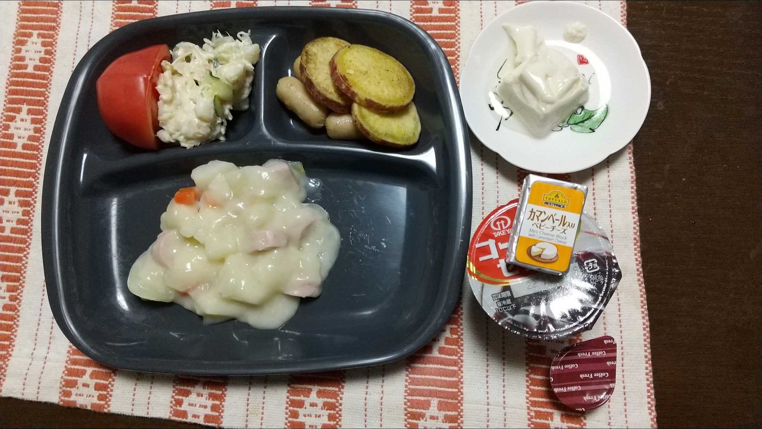 シチュー、ポテトサラダ、ウインナー、サツマイモ、豆腐