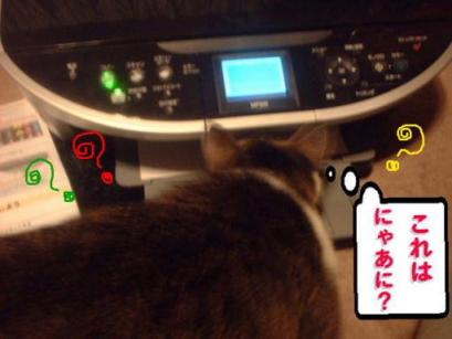 こんにちは、ぴよ母Akiで~す♪先日プリンターを購入したので、操作などを確認するために、一時的に作動させてみることにしました。すると、我が家の遊び好き、好奇心の固まり猫、ぴよ(ビビリ・1歳)が、さっそくやって来ました。ニオイを嗅いでおります。ぴよた~ん、ジャマしないでよ~。危ないよ~~向こう側に何かあると踏んだようで、びくびくしながら様子を伺っております。印刷開始しちゃったよ~ 怖いよぉ~~? 知らないよぉぉぉ~~~あ。ほら~。だから危ないって言ったのに。それ以来、プリンターには近づかないビビリなぴよでした。今日は、先日観覧に行った『ガキ使』のオンエア第1弾です♪(地域によって違うのかな~。今日観られない方、ごめんなさいです。)大喜利、楽しかったな~☆ その日の日記はぴよをクリック→