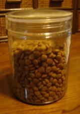 ぴよ母です~・・・昨晩の猫のごはんタイムに、ぴよ母、やらかしちゃいましたぁ~・・・みいこのカリカリが入っているビンがあるのですが↑ これの、蓋の部分だけを持ってしまったようでぼすっ とにぶい音がしてビンを、落としちゃったんです。当然中身は半分以上出てしまい・・・台所中が、みいこのカリカリの海。慌てて拾い集めるぴよ母。そこへ、猛ダッシュで走ってくる、ぴよ!!当然、落ちたカリカリを盗み食いするために、走ってきたのです。かたわらでは、慌てるぴよ母と、嬉しそうに落ちたカリカリを食べるぴよを、見つめるみいこ。ああ、こういうところで、イエネコ出身と、捨て猫出身の差が出るのか・・・なんとか拾い集め、いつものようにごはんをあげたのですが。少し食べて、怪訝そうな顔をするみいこ。「にゃんだ、落ちたカリカリ入れたな。」みたいな顔をして、食べるのをやめてしまいましたよ。えーーー、だって、もったいないじゃん!!!半分くらい落ちたのにさ~~。そ、そうだよね。みいこは、我が家の『猫の王様』だもんね。すみませんでしたぁぁぁぁランキングに参加しています。昨日は、34位まで上がったらしいです♪もうここまで来ると、上がったり下がったりしています!!ご面倒でしょうが、毎日応援の ぽちっ★ をしていただけると嬉しいです。(お急ぎの方は、ぽちっとして、すぐ戻ってにゃ☆)ここをクリック♪ ↓