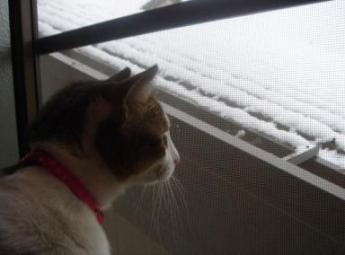 さ、さ、寒い~~~家の中でヒーターガンガンなのに、長袖4枚着ても鼻水~の、ぴよ母です。こんなに雪が降るのは久しぶり。ぴよにとっては、生まれて初めて見る雪です。ぴよちゃん、お外見てごらん。「うにゃーーー! これはにゃあに??」雪だよー。寒いと降るんだよーー(ほんとはそれだけじゃないけど^^;)「ほんとだにゃ おそとさむくて ぴよたん毛がたっちゃったにゃ」ね~こは♪こ~たつ~で♪まぁ~るく~な~るぅ~♪って歌もあるし、さすがの「遊びの天才」も、今日はおとなしくしてるだろ・・・と思ったのですがっっっっっっ今お気に入りのNEWおもちゃがありまして、ぴよったらそのことを考えると、いてもたってもいられないみたい。いつもコメントをくれる『夏みかん食べ太陽さん』の、10000HITのプレゼント企画 でこんなにたくさんプレゼントをいただきました~♪わーい♪わーい♪お? ぴよが興味を示してるぞ☆自分のおもちゃだって、わかってるのかな?カラフルでカワイイ、モコモコボンボン☆さっそく、おひとつ、どーぞ。自分で蹴って、自分で追いかけてます♪ぴよちゃん、ひとりサッカー!!ひとりで遊んでくれるのは、とても助かります。ぴよってしつこいんだもん。いつも遊んでるのはコレ→ 元祖ねこじゃらし 2本入りぴよにとっても、私にとっても、嬉しいプレゼントでした。夏みかん食べ太陽さん、ありがとうございました~♪♪ 黒猫のなっちゃん、た~ちゃんがいます。 『夏のにくきゅう 太陽のしっぽ』 ↑ 黒猫大好き☆のうちのリーダーのす太絶賛の、 かわいい黒猫ちゃんのサイトです☆ちなみに、みいことナナコは寝ていることが多いのですが、モコボンを興味深そうに見てました。遊びだすのも、もうすぐ??ぴよは雪でも元気♪元気♪ 応援の ぽちっ★ よろしくね♪♪ここをクリックすると、ニャゴニャゴ日記のランクがアップします。 ↓