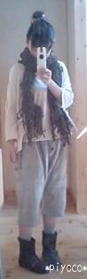 この前ポチしたICHIのループマフラー届いています。ナチュラル(キナリ)購入しました。 早速お披露目です♪♪時間があったので (息子おじいちゃん家に遊びに行き中&チビスケお昼寝)画像編集にチャレンジしてみました~ tumugu ブロックチェックリネンPOprit 7分袖ボートネックOPmeri ja kuu アームウォーマー無印 ジャガードレギKOOS VERONIQUE ループマフラー、ふわっふわで気持ちイイです☆届いて実際に見てみると思っていた以上にボリュームがあって(笑)はじめは上手に巻けずに苦労しました。。髪はまとめないとバランス悪いです><お店の注意書きにあった『独特のニオイ』は全く気になりませんでしたよ~今年流行りのスヌードなのでいっぱいコーデに取り入れたいな♪♪ただ。。ざっくりと編んであるので引っ掛けやお子チャマに要注意です!!!ナチュラル在庫あり(予約) 11月21日10時より3色予約開始 メリヤクーのアームウォーマー、『モロッコの街色』です。素敵なネーミング(*´ェ`*)レッグウォーマーとしても使ってます。微妙な配色がお気に入りデス**( ・ノェ・)コショッ リブの部分がFrenchBullのプレーリーチューブにソックリ。。杢beige×red キニナルキニナル**flat-AのリネンOPの予約販売です。ループマフラーに合わせている真ん中のOP、素敵なんだけどお値段が。。><他の2つはお手頃価格なので、予約しようか迷い中。。シンプルで丈が長めのOPが欲しいのデス(*´艸`) KAPITAL 縮絨ウールギャベマフラーこれ欲しいーーーー!!! ホントに欲しい。。。 衣家サンP10か。。 んーーー *** それから。。。昨年から熱望していたモノが運命的にポチできたんです今日届きました!もう大興奮!!!