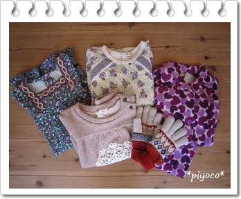 BREEZEのシークレットセール、朝一で参戦してきました!張り切って開店前にSCに到着(*´艸`)開店と同時に突入したので一番乗りでした☆でもすぐにたくさんの人で狭い店内がすごいことに。。。まずはSeraphのお目当てのモノのサイズを確認してすばやくゲット!それからJUNKSTOREの棚に移動し、欲しいモノをとりあえず確保(笑)そのあと小物類を物色してました。お店の隅っこで手に取ったモノを選別してからレジへ。。もちろん、レジも一番でしたよ~^^前回のシークレットセールのときに店内でウジウジ悩んでいたら次から次へとお客さんがやってきて、レジが長蛇の列になり会計にすごーーーーく時間がかかったので、今回はスピード勝負会計を済ませてお店を出るまで30分弱くらいでした! それでは、戦利品のお披露目を。。まず娘の分デス。熱望品の花とうさぎのOPとカギ針編みトレーナーがあってよかったぁ~(*´ェ`*)リブロングチュニは花柄を発見して思わず。。ドットの120を愛用中なのでサイズアップの130を♪ボトムは飽和状態なので、トップスのみの購入になりました。それからフリースパジャマと手袋も。手袋は多分半額まで残ると思ったのですが、娘が外遊びするときに手が寒い><と言うので、すぐ使いたくて買っちゃいました。あ 次は息子の分。人気の転写PTや騙し絵トレーナー、チェックパンツは来年用に90を。ヘッドフォンPTパーカーはジャストの80です。 (グレーは80しかなかった。。) 今年サイズアウトだけど、チビスケも控えているのでOKです♪フリースパジャマも今年着たいので80を。 それから、お友達の息子クンへのプレゼント用におもちゃも買いました。 結構がっつり買っちゃいましたね(ノ∀`*)でもぜーんぶ30%OFFだし、大満足です♪♪今季は福袋に手をだしていないし。。(笑) 皆さんの戦利品報告も楽しく読ませてもらってます。(読み逃げゴメンナサイ)あ、あれも買えばよかった~ってことになりかねないのですが(汗)シークレット中にあと1回くらいBREEZE覗いてきちゃおうかな~(*´艸`)