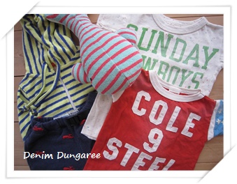 久しぶりに着画デス。 チョット前に買ったもの全部まとめて。。笑 パイルパーカーはこれからの季節のちょっとした羽織りにちょうどイイ感じ!!今季、息子のモノは全部100を買っているのですがこれは初の110にしてみました。naomamサンが1サイズUPで購入したとブログに書いていたのを思い出して参考にさせてもらいました。どうもありがとーー!ワタシはなかなか実店舗には行けないのでサイズ感などブログに書いてもらえるとすごく助かります。DDブロガーの皆さん、これからもヨロシクお願いしますねー☆ クジラPNは若干大きめです。。まぁ下がってくることはないし許容範囲かな?やっぱりウエストゴムは楽チン♪ COLE9 TEEもメチャメチャ素敵です!早く1枚で着せたい♪ *** 昨日入荷したボーダーSPN このイカリデザインは正直もうイラナイって思ってたのですがUPされたクレイジーが思いのほか可愛くて。。。(*ノε`*)BMを買って息子とチビ兼用にしちゃおかなーと思ってみたり。 くじらTEEも今日届きました!ライトグリーン、とっても素敵な色でした。chiharuチャーン やっぱりチビ用も欲しくなっちゃったーーー><