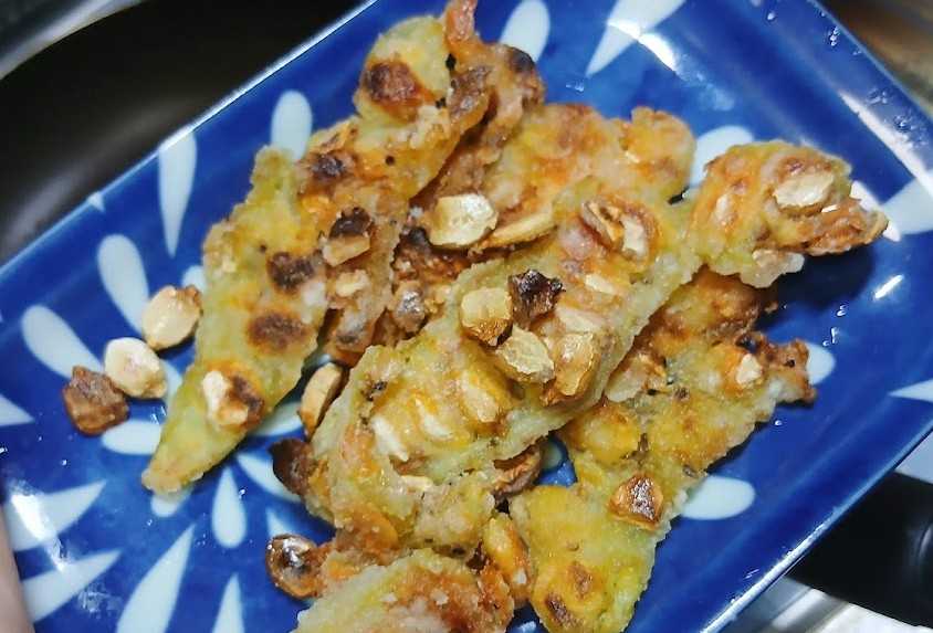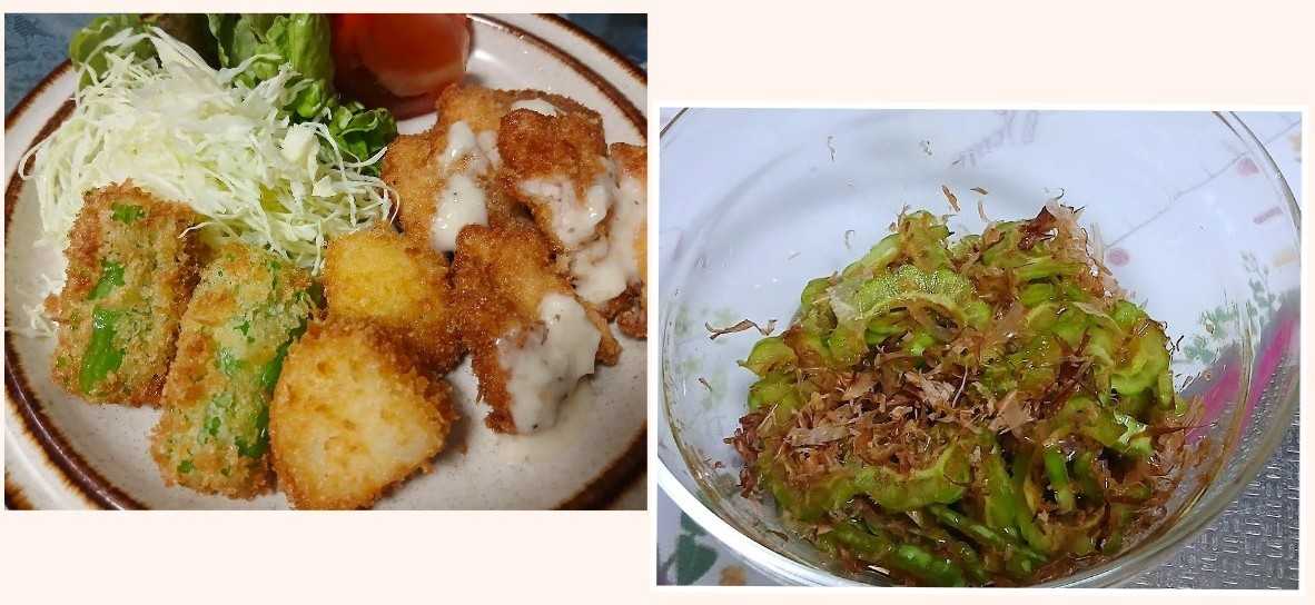 で、昨夜は鶏肉のフライとゴーヤ、じゃが芋のフライ。