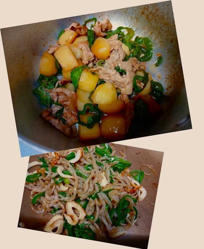 今夜はピーマン消費のメニューでした。
