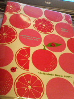 今年も必需品、スケジュール帳。6つ穴リング綴じタイプ買ったんだけど使いにくい使いにくい;イチイチ紙を外さないとリング辺りが書きにくいし…表紙が厚いし。って事で去年と同じ様な冊子タイプ買いなおした(;´Д`)流石に手帳も今はもう値引きしてるね。中はイラストとか一切無い激シンプルタイプ。イラストあると何かと邪魔臭いし。でも、表紙がイイのが全然無くてこんなの買って…。表紙だけチェ―ンジ!(笑)丁度イイ大きさのフライヤ―があったから入れてみた。兎に角あの表紙が嫌だっただけwLAST ALLIANCEのフライヤ―、此れはなんとなく好きだな。←反対側表紙wwwきゃいきゃい゚+。:.゚ヽ(*´∀`)ノ゚.:。+゚(爆)LAST ALLIANCEのフライヤ―に飽きたら今度はGackt氏にしよう…wさて、予定カキカキしながら寝よ―…昨日寝てない―。