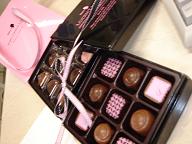 ヴァレンタインチョコレィト(´┏_┓`)今日そのコ―ナ―を通りがかって黒&ピンクの可愛い包装につられて買ってしまった。ちょっと贅沢なおやつでした。携帯、無事本日奪還。