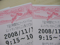 は、母は、、、朝っぱらからこのパス↓を取るために動悸?息切れしながら?、、、ダッ、、、いえ、早歩きしたのに、、、わたくしが、スプラッシュマウンテンのFPをとりその間に息子くんたちがビックサンダーマウンテンへ。楽しむはずが、、、乗り終わったあと、怖かった!ああいうのは嫌いだという息子くん。。。えっ!?前回乗ったときは、楽しんでたじゃん!!何かの勘違いか?と思ってスプラッシュマウンテンに向かおうとしたけどかなり拒否る息子くん。。。なので、ホーンテッドマンションへ。これまた、かなり拒否まくり逃げる息子くん。。。おかしい!!これも前回全然平気だったじゃないの!?しょうがないんで、息子くん一人置いて楽しんできました。前回乗れなかったスプラッシュマウンテンへ戻りたかったけどだめそうなので、母的には仕方なくソフト路線へ変更。息子くん、ダンボやメリーゴーランドでかなり満足!その後、チョコポップコーンのレフィルゲット!で更にご機嫌。前回購入したバズの入れ物持って行ってました^^;というわけで、今回もスプラッシュマウンテンに乗れず。。。母、かなりがんばったのに、、、報われず。幻のFPとなりました。で、今回はこれだけでなく!な、なんと!!↓のFPも幻に。。。ハニハンだよ。平日、しかも、混みにくい?水曜だったのに、スタンバイは120分~待ちだったのよ。FPだって、お昼前にとったのに↑の時間。。。取る意味あるのかな?と思いつつ取ってみたんだけど。結局は、疲れた、寒い、などなどの理由でハニハンもパレードも花火も見ずに帰っちゃいました。。。こんなこと言っちゃなんですが、プーさんは好きだけどハニハンにはそれほど執着はないもので。でも、、、もったいない!?今回の息子くんは、他にも拒否ることが多く、前回の嵐の中の強行軍よりも母、、、疲れました。一体、何なんだよ~って、息子くんの気持ちがくみ取れない、いや、くみとりたくなかった母なのでした~だって、、、もしかしたら、最後の?TDLかもしれないんだもの~