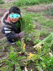 もちろん、本当の大根抜きをしました♪本日は、曾祖父の月命日。納骨後、初めての月命日ということで出かけてきました。まずは、お仏壇を前にお線香。。。ろうそく、お線香に火をつけたくてたまらない息子くん。遊びじゃないんだぞ~その後、南無阿弥陀仏~難しくて言えない!なんて言っております。その後、田舎の共同墓地の納骨堂に入っててお花やろうそく、線香などなども共同。そのあたりのお掃除をして南無阿弥陀仏~そして、本家のお墓をお掃除して南無阿弥陀仏~帰ってくると、大根抜きまだ???とやる気満々な息子くん。何故かというと、、、ちゃんとお仕事したら、本を買うっていう約束をしてたのでした。(昨日、本屋で見つけられなかったんで)お昼から畑仕事の始まり~以前の長靴が小さくなったので、新しいものを買ってもらいました。大根を抜いて、葉をとって、水洗い。畑の草抜きもいっぱいあったんだけど息子くんは、草抜きは気に入らなくて水が冷たいけど、大根洗いをぜーんぶやってくれました。その後、おじいちゃんのお手伝いなどなどやってたけど息子くん、、、自分にはちょっと難しいものばかりやりたがって、逆に邪魔してる風に。。。母と一緒に草抜きしようと誘うけどそれは嫌~そのうち、おうちに帰ってしまいました。。。最後にやっと本屋に行ったのですが、お目当ての本はなし!店員さんに聞いてみると売り切れ~月刊誌かと思ってたら、季刊誌のようで、いろいろ調べたら今月新発売になるものよう。でも、前回号の付録がよかったんだよね~その本は、「ポケモンファン vol.6」どこかのお店に在庫があるかな???