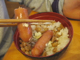 息子くん、今日は、僕がご飯作りたい!!と言って作りましたのが↑でしたご飯に納豆を混ぜて、ウィンナー焼いてマヨネーズかけてるみたい。母、びっくり!?なんと、パパもこういうのを作って食べるのです。パパのを見ていたのか、それとも、遺伝子がなせる技か!?おいしい!と言って食べておりました^^;