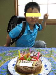 入学式の日。例年、花曇りで冷えることが多いのですが、今日は、ものすごく天気のよくポカポカ。学校まで往復で、汗びっしょりに。家に戻ると、なんと!半袖です。ケーキを後ろから見るとこんな風になってました☆ちなみに、実りの季