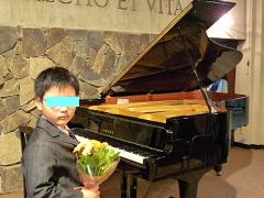 教会のホールで発表会がありました。曲は「アッシュの林」当日の朝まで練習してましたが、これが、心が落ち着かないのか速くなったり、遅くなったり。。。これで本番大丈夫???と心配してたら、、、び、ビックリ!?ちゃんと弾けてました^^緊張するとは言ってたけど、落ち着いて見えて。笑顔は全然ありませんでしたが^^;5月くらいに楽譜をもらってから片手ずつ、2小節ずつ練習して、いつ最後までたどりつくことやら、、、と思ってたらほとんど楽譜を見ない息子くんは^^;暗譜の練習は必要なしだったんで間に合いました。クリスマスにはジュピターが弾きたいらしいけどクリスマス会まで約3週間。うーーん、、、間に合いそうにないなあ。。。母はずっとビデオを回してて、パパに写真を頼んでいたら、、、ブレてたり、息子くんがちゃんと写ってなかったりしかも3,4枚しか撮ってない。。。ぜーーーんぶ、使えない写真でした。ガックリ。。。にほんブログ村こちら↑に参加してまーす。子育てブログが集まってまーす♪