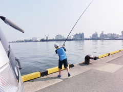 チャレンジのポイントためて、釣り具ゲット!釣り竿とリール、ルアーがついてました。かなりポイントためてましたよ~海釣りデビューということでおじいちゃんが海に連れて行ってくれました^^デビュー1日目は、とりあえず、竿をなげる練習。近場の岸壁に行って、竿の調子もみてもらったよ。デビュー2日目、早朝に家を出たけど、、、行く釣り具屋さん、どれも閉まってて、エサが買えない!?釣り具屋さんて朝から空いてると思ったのに。。。というわけで、埠頭まで行ったけど、エサなしで釣り竿たれてます^^;隣のおじさんは、アジがいっぱい釣れてましたよ~↓韓国行きの高速船がちょうど後ろを通りました。 これから船着き場へ向かってる船です。この夏、どのくらい釣れるようになるかな♪この後、釣り具屋さんへ。このあたりの釣り具屋さんは、、、10時開店らしい。おそーーーいい!?というかエサは前日に買っておくべき^^;明日は、海釣り公園に行くよ~にほんブログ村