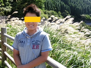 連休中はお天気よいですね~これは阿蘇方面へ出かけなければ!とドライブへ♪朝7:30には出発!の予定が、、、7:45くらいになっちゃいました^^;これでも遅れが少なかったかも。いつもだったら30分は遅れるので^^;なぜにそんなに急いだか!朝食を原鶴の道の駅でとりたかったから^^8:30くらいには着く予定だったけど出発の15分遅れと、ガソリン給油・タイヤの空気入れで原鶴到着は9:30くらいでした^^;なので、息子くんは、おなかすいた!!連発^^;ここの唐揚げとおにぎりが好物なので狙ってたのですが、、、唐揚げはまだ全く並んでなく、おにぎりは少しだけ・・・というわけで、焼きサバ寿司を初めて買ってみました^^焼きサバと酢飯の間にしょうががはさんであっておいしかったです☆原鶴から日田へ向かい、杖立から小国、大観峰へ。まだお昼前なのに、大観峰は大渋滞!?入り口からずらっと車が並んでいたので諦めました。内牧を目指して下りていく途中で写真をパチリ♪阿蘇周辺は風になびいたススキがきれいでした☆下界はまだまだ昼間は暑いのですが、朝は冷え込んでいたので、阿蘇は寒いかも~と母だけ長袖持参。もっていってよかった~阿蘇は長袖必須!車に乗ってる間、パパが窓をあけるもんだから足下も冷えちゃったよ(>