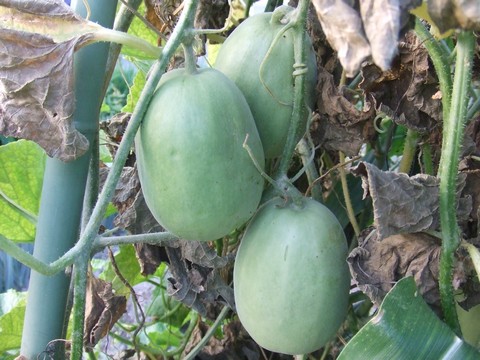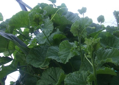 トマトはおいしゅうございました。特別うまい!ってことはありませんでしたが、十分においしかったです。写真は棚仕立てにしたメロンです。ミニメロンがこの暑さで異常に茂っております。花が付かないで大きくなってしまうという窒素肥料過多のようです。栄養成長(↓↑生殖成長)が激しすぎる、のだそうです。元気で良いんですけどね。でも実がならないのはちょっと困るかも。←ポチッと!ランキング参加中