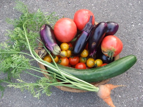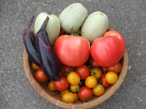 大収穫期も峠を越えたとはいえ、まだまだたくさん収穫できます。母親も自給の枠を超え、キュウリとミニトマトが大量に余っています。私は収穫係です。毎日×毎日、晩ご飯はこんな感じですが、野菜が好きなので大喜びで食べてマス(^_^;)。無農薬だし!完全有機だし!でもそろそろ茄子は夏バテのようで、近く切り戻しをするつもりです。←ポチッと!ランキング参加中