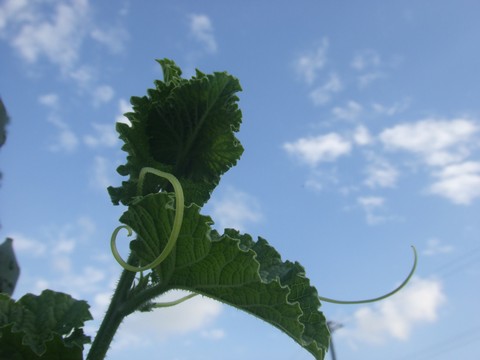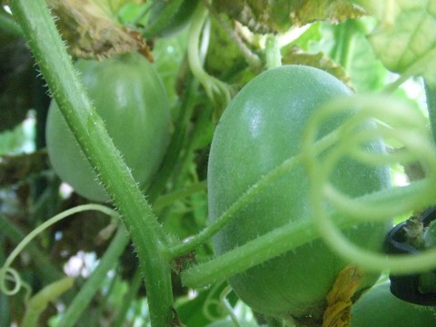 ちょいと就職活動をはじめたもので、畑がお留守になってしまいました。4日ぶり?なかなか良い仕事が見つかりません。しばらくは失業給付が頼りです。さて、ミニメロンが大きくなってきました。といっても今、ソフトボールよりも小さいぐらいです。全部で10個ぐらい実が付いています。お盆には食べられるかな?←ポチッと!ランキング参加中