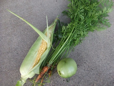 収穫が続きます!トウモロコシ!!σ(^^)さっそく茹でて頂きました。甘くて香りが良くて格別!!ちなみに生でもちょっとかじりましたが十分イケました。ニンジンはこれで間引き終了。トマトは虫か病気か分からないのですが実に穴が空いていたので。小さいくて青いけど、他の実のためにとってしまいました。このまま置いておいたら赤くなるかなぁ?←ポチッと!ランキング参加中